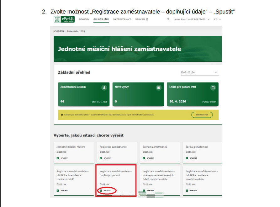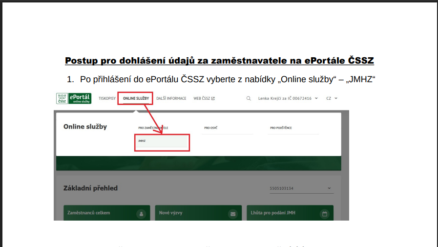 JMHZ - Postup pro dohlášení údajů za zaměstnavatele na ePortále ČSSZ