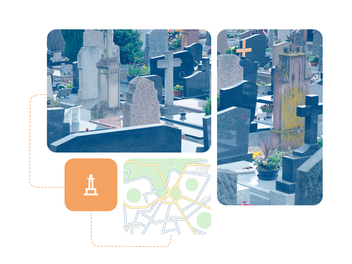 Návštěvníci vašich stránek budou mít k dispozici interaktivní mapu hřbitova s možností vyhledávání podle čísla hrobu nebo jména pohřbeného.