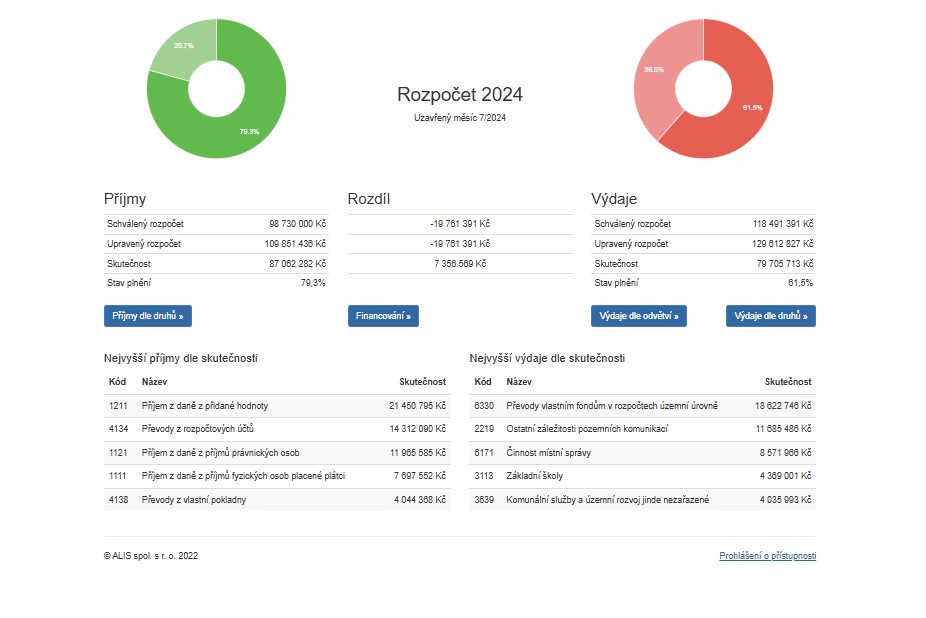 V přehledné webové aplikaci se zobrazují grafy a členění dle paragrafů a položek. Volitelně lze nastavit publikování čerpání rozpočtu až na úroveň jednotlivých dokladů, jako jsou faktury.